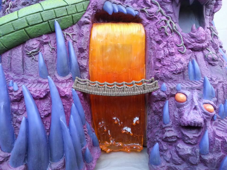Designed by Nate Baertsch and the Four Horsemen, this statue from Icon Heroes draws from many different past references of Snake Mountain. From the Filmation series comes the "Blood Falls", while the vintage toy playset influenced the acid lake, several monster heads throughout, the prisoner's ledge, the bridge, the computer station, and the gate atop the taller mountain.