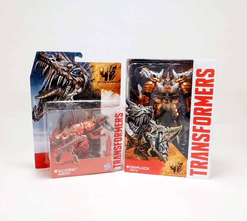 So what about collectors who are interested in the same characters? Hasbro has the Age of Extinction segment of the Generations line for you (read our advance review HERE)! There are three scales this time around: the small Deluxe, medium sized Voyager, and super-size Leader. All of these continue the design imperative of more straightforward transformations, with even the largest and most complicated topping out at around 20 steps. This line has all of the main characters from the film and a whole lot more that weren’t exactly on screen, but they fit in seamlessly with their fellows. Deluxe ($15) is where you’ll find a ton of Dinobots as well as vehicle Transformers like Drift, Bumblebee, Crosshairs, and more. Up the scale at Voyager ($25) are larger ‘bots and ‘cons like Optimus Prime, Grimlock, and Hound, and Leader ($45) is reserved for the biggest and baddest: Optimus Prime and Grimlock so far.