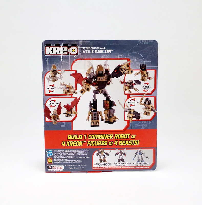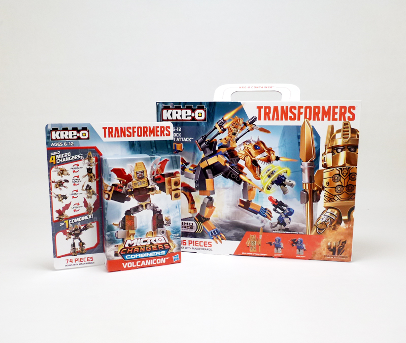 Similarly Hasbro continues strong with Transformers KRE-O, adding Age of Extinction to the mix. Several AoE sets are in stores now, with one of the most popular already being the Grimlock Street Attack. Celebrating everyone’s favorite Dinobot, Street Attack features a full-scale Grimlock KRE-O, breakaway arch, and KREON figures of Vehicons and Gold Knight Optimus Prime. There are even plenty of bonus features like Prime being able to ride Grimlock and use of “Dino Force” (cleverly placed magnets) for Grimlock and the Vehicons to interact. The Micro Changers Combiners series expands with some new sets as well that are “inspired” by the film. These are all new combiner teams with Volcanicon, Grimstone, Obsidian, and Lazerbolt, each with four transforming KREON figures that can merge into the larger whole.