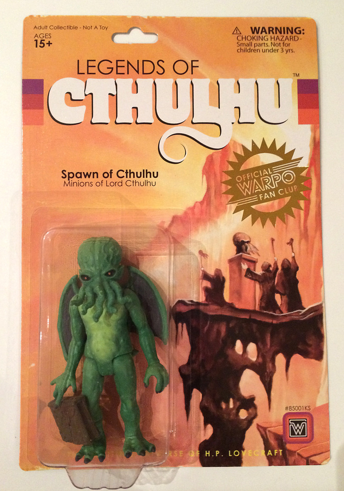 Warpo announce that they are close to shipping their Kickstarter funded Legends of Cthulhu action figures (read our story HERE). To show just how close they are, they have provided new photos of the packaged samples. Note the Kickstarter Exclusive “Official Warpo Fan Club” gold foil stamp on the card above. Only Warpo Kickstarter backers will receive figures with this exclusive stamp.