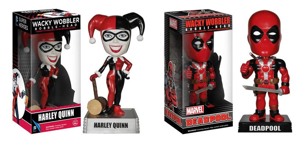 With the huge popularity of POP!, it's surprising to see Funko still has a place for the format that started it all: the Wacky Wobbler! Arriving soon are two new Wobblers, includign DC Comics' Harley Quinn and Marvel's Merc with a Mouth, Deadpool. Look for Deadpool this November with Harley in January.