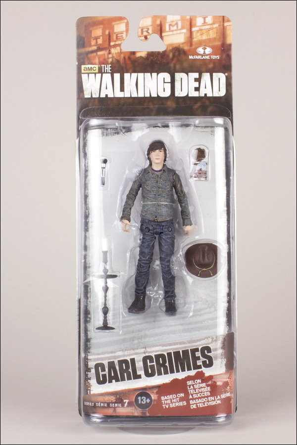 CARL GRIMES: Carl Grimes, who started out as a shy little boy is season 1, has now become battle hardened by the dramatic events of the most recent seasons. In season 4, Carl's abilities to protect himself and other survivors have greatly improved. His youth still shows at times, losing one of his shoes during a preventable walker encounter and indulging in a scrumptious can of pudding. This figure comes with approximately 22 points of articulation, removable sheriff’s hat, flashlight, Terminus memorial candle and a can of pudding.