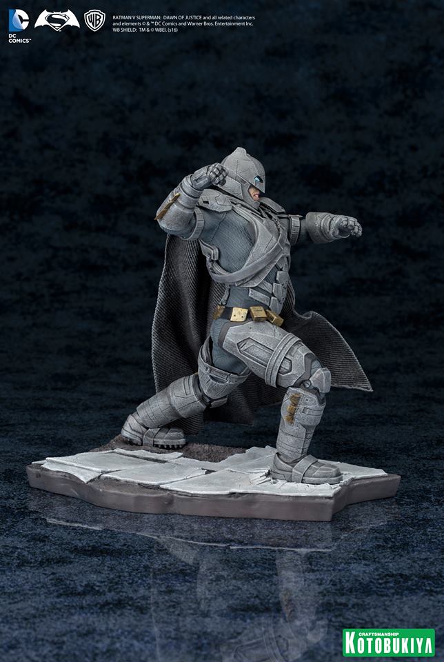 Kotobukiya presents their newest ARTFX+ statues based on the epic superhero showdown, Batman V Superman: Dawn of Justice. Combine the two ARTFX+ statues together at the base to replicate the epic battle everyone has been waiting for! The ARTFX+ Batman and Superman are sold separately so that they can also be displayed by themselves. As the Man of Steel swings his punches at Batman, Gotham's vigilante guards himself with one arm, with his fist pulled back ready to strike at Superman. The 1/10 scale ARTFX+ Batman V Superman statues include all the intricate details at an easier to collect size.