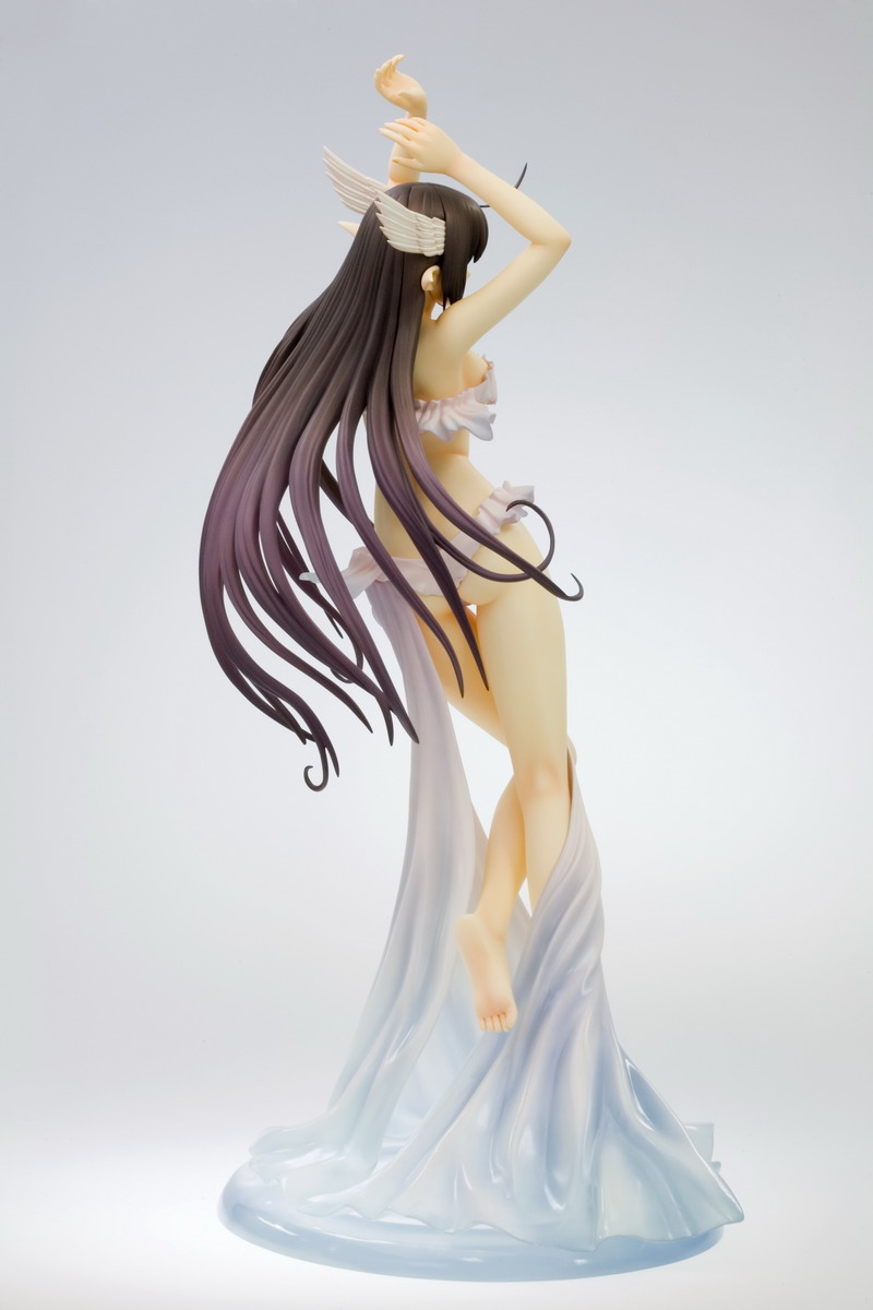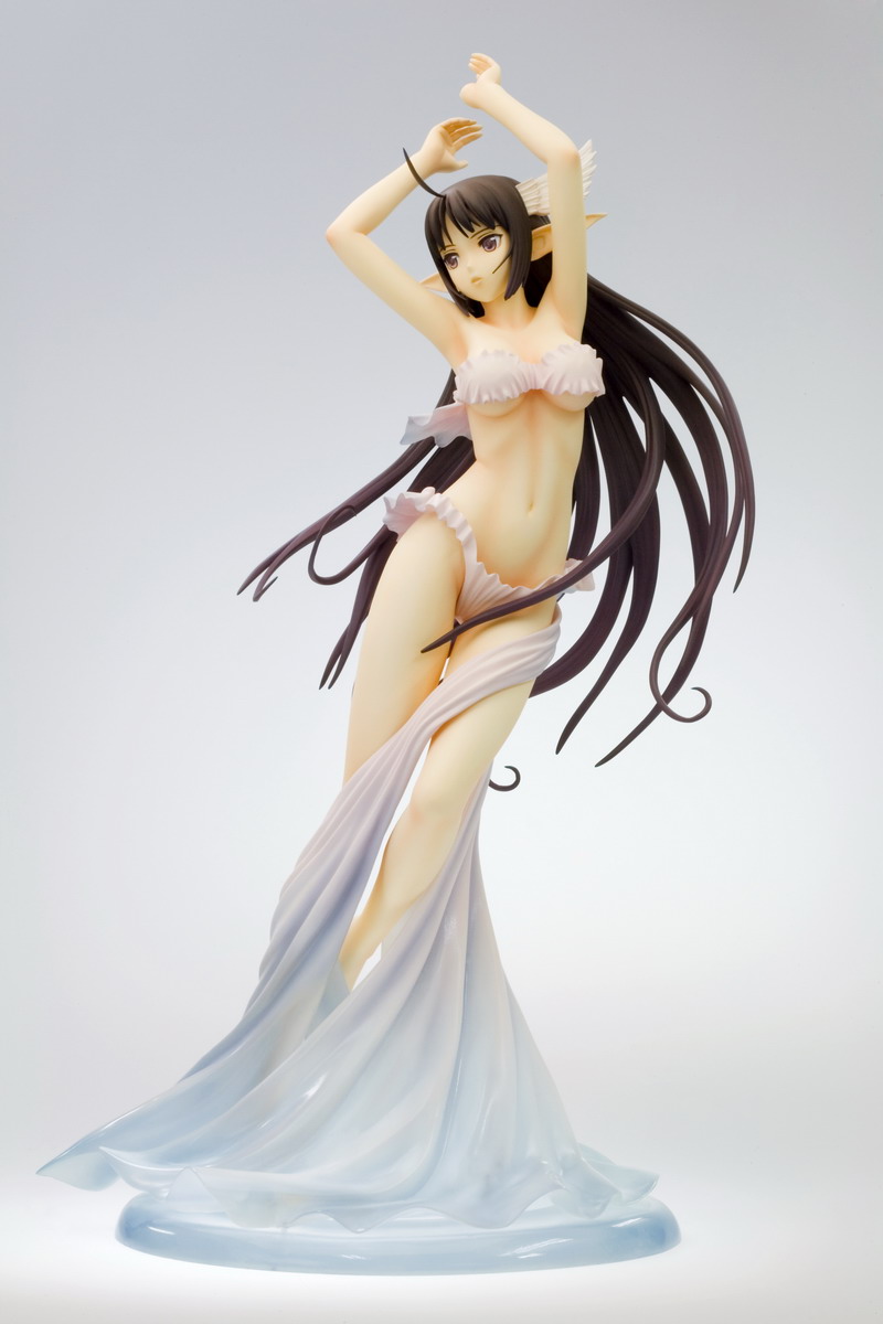 Based on the cover art illustration of "Tony's Art Works from Shining Wind," Xecty is the second in a sub-series of 1/6th scale goddesses following Elwyn Goddess of the Forest. The radiant beauty gracefully rises up out of a flowing windy base, appearing to float in the air. Xecty is posed with her arms above her head, highlighting the curves of her body. The goddess wears nothing but a tiny bikini-like garment that resembles translucent white ribbon and leaves very little to the imagination. As her hair flows down behind her, Xecty's long ears and the white angel wings protruding from her head sweep backwards, away from her serenely attractive face. Sculpted by Hirotoshi Nakamura, Xecty is 12 ½ inches tall (1/6th scale) and comes packaged in an attractive window box.