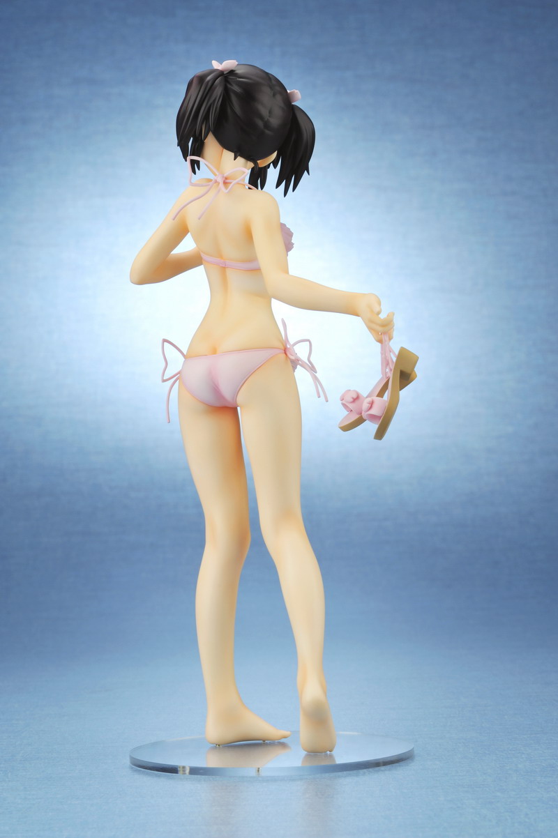 Based on a new illustration for the PSP version store poster by Mitsumi Misato, the adorable high school girl is dressed in a skimpy "innocent" pink frill top two piece swim suit. Konomi's pose makes the girl even cuter as she carries her sandals in one hand while with the other she stretches out her frilly top, exposing plenty of skin underneath. Sculpted by Yuzo, Yuzuhara stands 9 inches tall (1/6th scale).