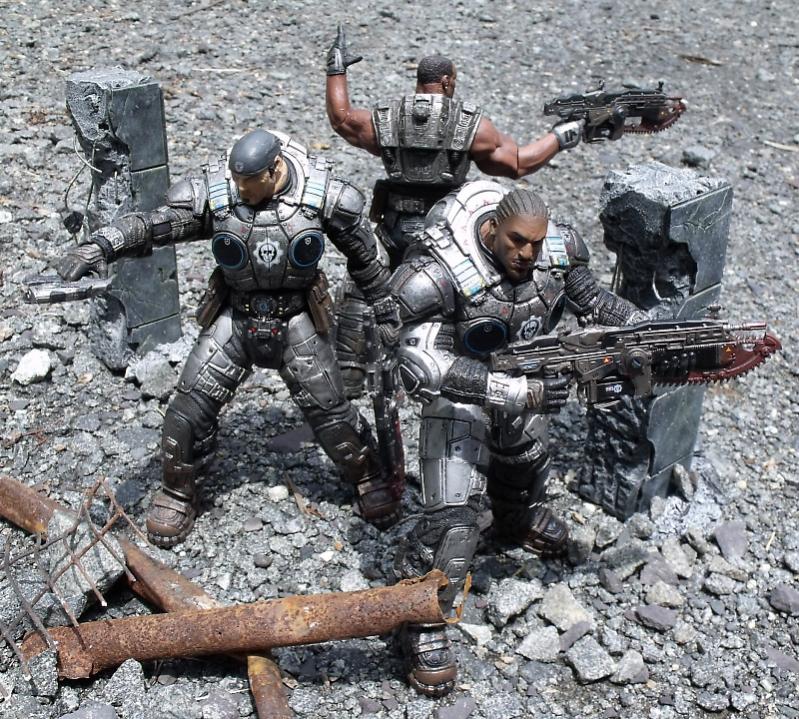 Like all Gears of Wars figures, NECA adds value with weaponry. Jace packs the standard COG-issue Lancer rifle and a Gnasher Shotgun, both of which look killer in his hands. Jace strikes me as an in-your-face kind of guy, so I have him posed with shotgun at the ready.