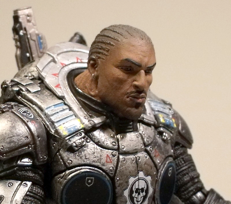 Just look at the mug. NECA's sculptors captured rock solid determination and overall badassery with this portrait. The character's cornrow hairstyle and silver studs further define Jace's tough look, making this figure a unique new addition to your COG army.