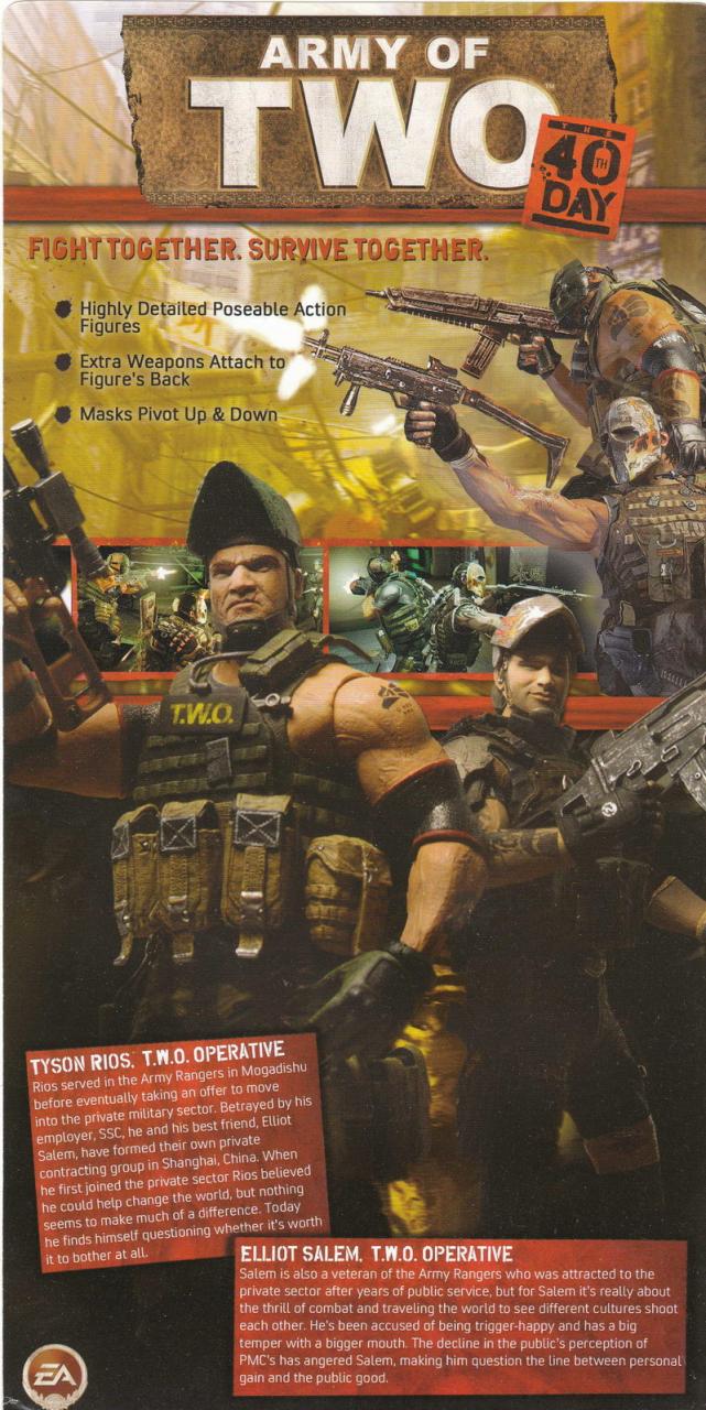 [HR][/HR]While Army of Two: The 40th Day made considerable improvements over the first title, its focus on two-player cooperative play made for an awkward solo experience. Needless to say, I didn't enjoy playing it much but NECA's incredibly action figures of Rios and Salem more than made up for it. It's all about the cool masks, unique body armor and intricate tattoos applied to the figures. Each came armed with a G36 assault rifle, Dragunov sniper rifle and automatic pistol too, which was great, aside from the fact that they lacked decent articulation to use them with. Regardless, for display purposes, these figures rocked.