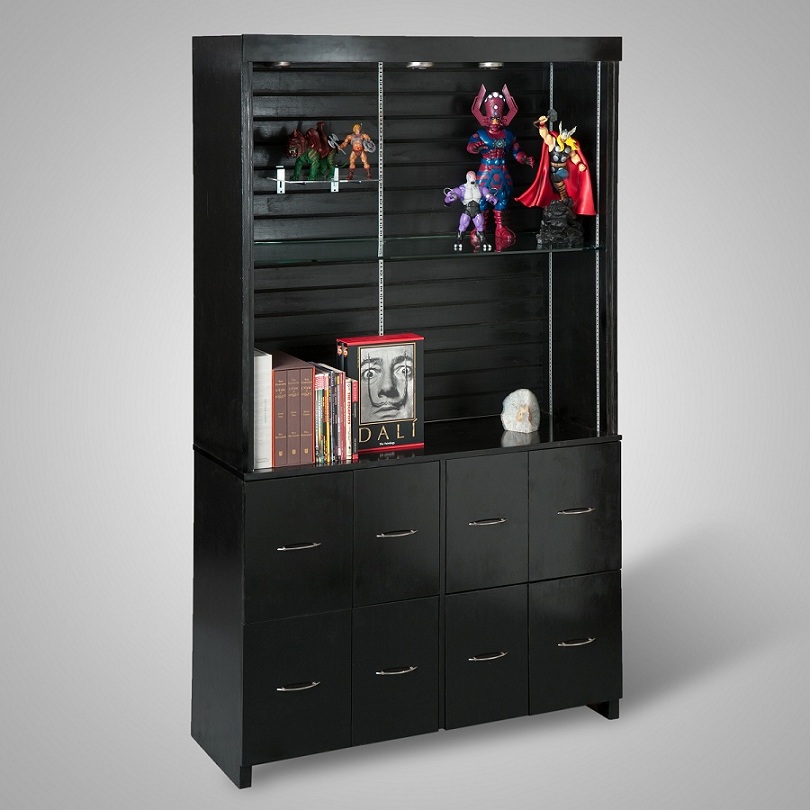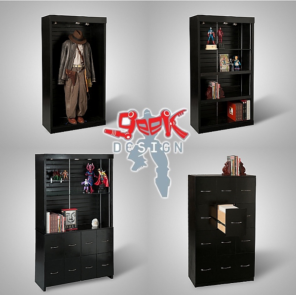 [HR][/HR]Now here's something you don't see everyday in the toy collecting world - high-end furniture designed just for collectors. Founded by Steve Ledyard just last year, Geek Design (geek-design.net) specializes in handcrafted cabinets, dressers, and shelving units, each with a specific display function in mind. The robust "Excelsior" has your comic book storage needs covered, while the more versatile "Enterprise" and "Excalibur" elegantly display action figures, statues and prop replicas.