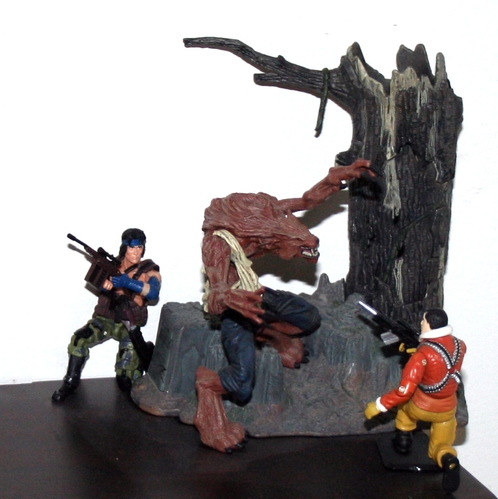 This was always my favorite as a kid, and it’s still a top contender whenever I look at available display space (and it looks about the same as when I was a child, also). The dio seeks to do more than showcase characters, it seeks to capture them in a narrative moment—whether that moment is a battle, a mission, or simply taking a breather. The dio is usually a good fit because it provides for not only the display of figures but some environment also, giving the characters context. A cluster of G.I. Joes is cool. A display of G.I. Joes fighting a battle in front of Spawn Alley—well that’s just awesome. My dad is a railroad enthusiast, so the dio display is a big one for me, but as my wife has commented on numerous occasions, dios can create a visually messy look to a display space (or maybe those are just mine).
