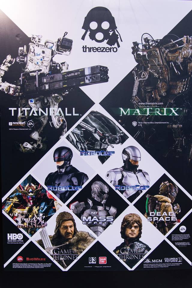 ThreeZero provides fans with a look at new photos from Toy Soul 2014 in Hong Kong. A number of upcoming 1:6th scale product was on display, including Dan LuVisi's Last Man Standing "Gabriel" (see our story HERE), RoboCop (2014) series, first Mass Effect figure, John Shepard (story HERE), Titanfall pilots and mechs, Dead Space 3's Isaac Clarke (HERE), as well as figures from their Mazinger Z series.