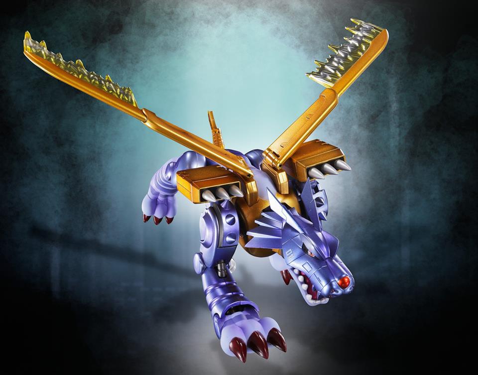 Bluefin Tamashii Nations' popular D-Arts Metal Garurumon figure is back in a totally revamped and original color design, perfect for fans of Digimon Adventure. Recreate Metal Garurumon’s frigid attack Metal Wolf Claw (Cocytus Breath) with the included effect parts. You can also pose him in regular wing or flying wing poses. Additionaly, set includes a missile and special joint to use with Tamashii STAGE (sold separately).