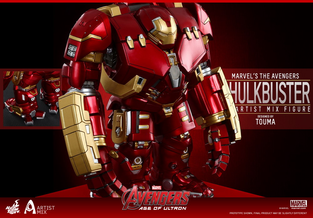 The first wave of collectibles from this series features a number of characters from the upcoming Marvel’s Avengers: Age of Ultron. This first series will include Iron Man Mark XLIII, Captain America, Hulkbuster, Ultron Prime, and two versions of Ultron Sentry! Each Artist Mix Figure has a bobble-head and stands approximately 5.5 inches tall (14cm - Hulkbuster stands approximately 8", 20cm tall) and perfectly combines the movie characters’ designs with Touma’s distinctive art style.