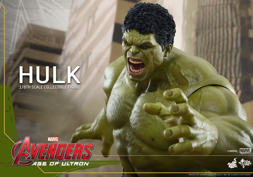 Hot Toys presents their newest Avengers: Age of Ultron 1:6th scale action figure: Hulk! The movie-accurate collectible figure is specially crafted based on the image of Hulk in Avengers: Age of Ultron featuring a newly developed screaming head sculpt with rolling eyeballs, and a specially painted muscular body.