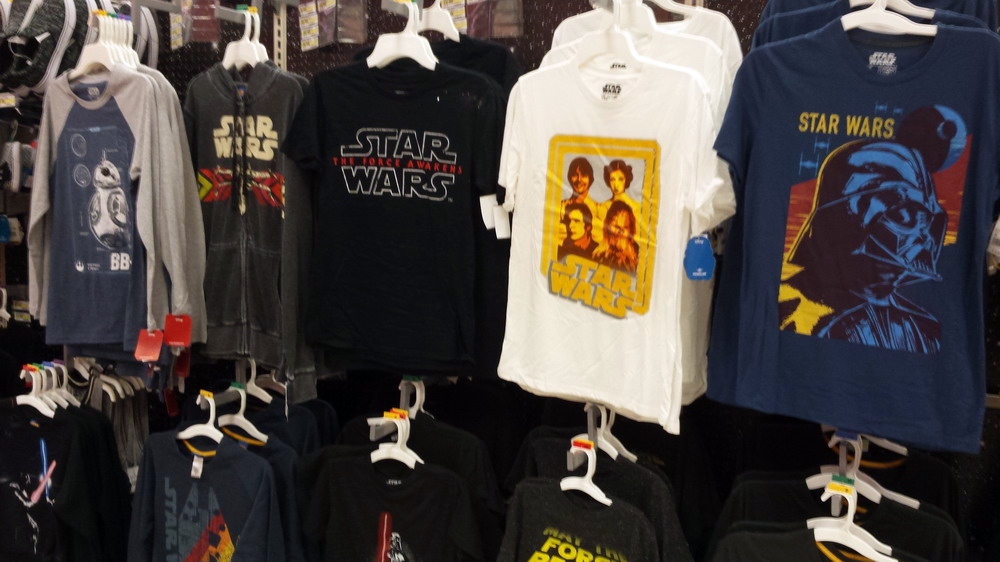 But all was not doom and gloom. I mentioned that BB-8 was on my shopping list, and Target did not disappoint. At the crack of midnight, fans flooded Target's Force Friday aisles. I quickly snatched up a Funko Pop! BB-8 and I found myself a really nice baseball tee with the droid on it. In fact, of all the product offered, the apparel was the most appealing. Aside from Force Awakens clothing, there was a tempting selection of classic Saga shirts and hoodies. Toys, for the most part, were aimed at kids. JAKKS towering giant figs impressed.