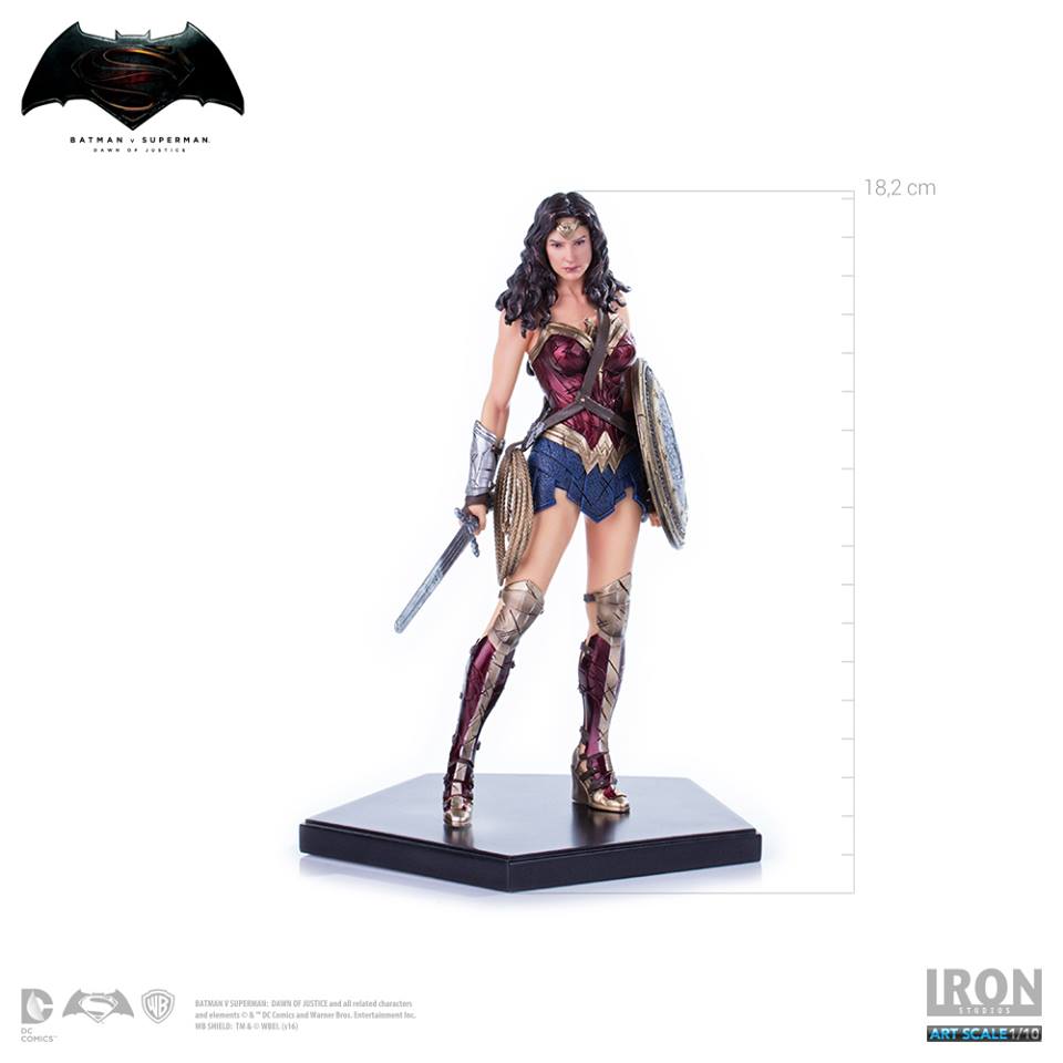 Limited edition statue based on Gal Gadot's Wonder Woman from Batman V Superman: Dawn of Justice. Statue is manufactured in Polystone, is hand painted, and stands around 7 inches, including the base.