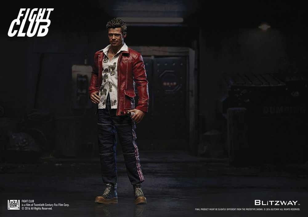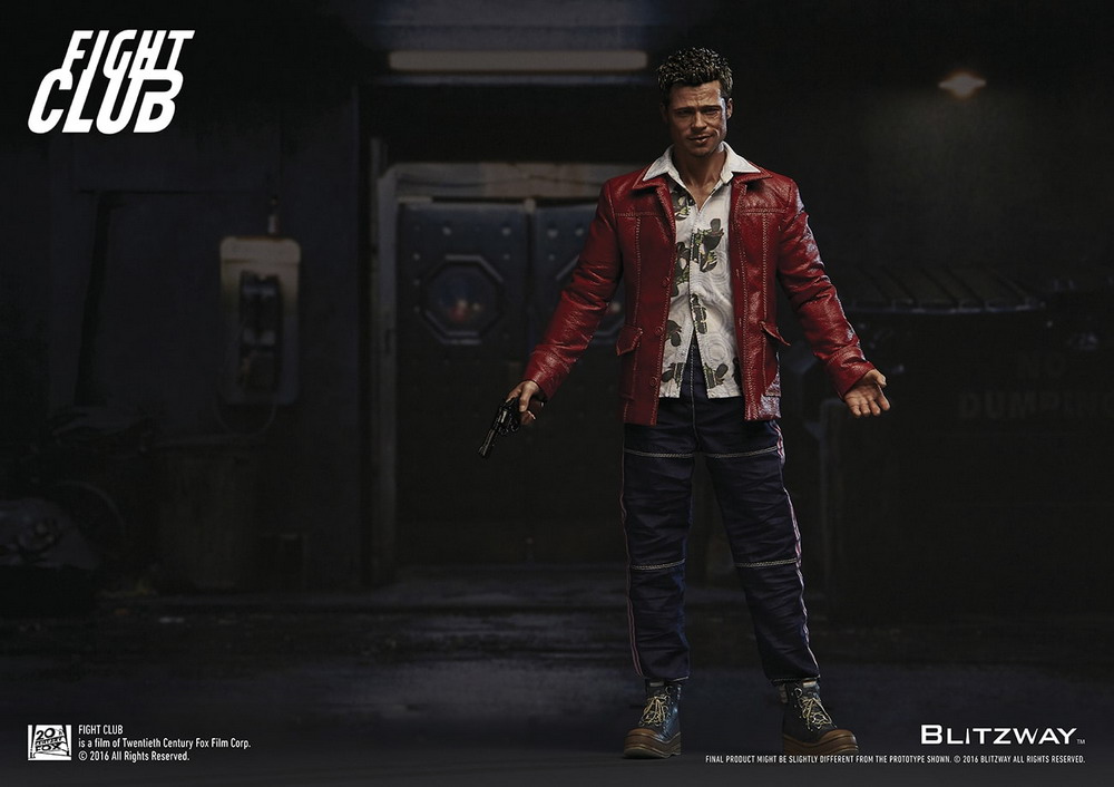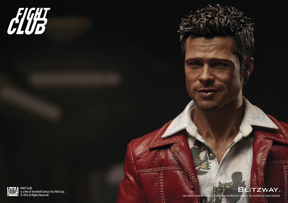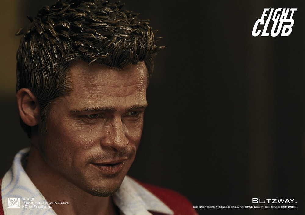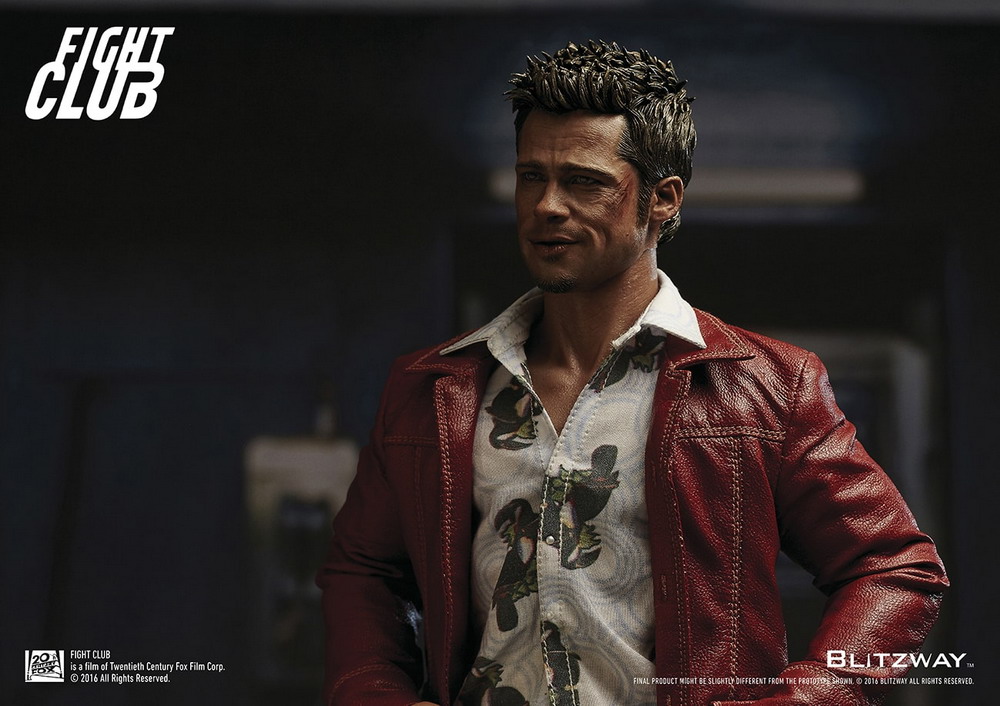 Blitzway is very proud to officially introduce the Tyler Durden 1/6 Scale Collectible Figure from the 1999 blockbuster film, Fight Club. It features a highly detailed likeness head sculpt, accurate tailored costumes, brand new fully articulated body, various realistic accessories, and perfect realizations of the movie character. Sculpted by K.A. Kim.