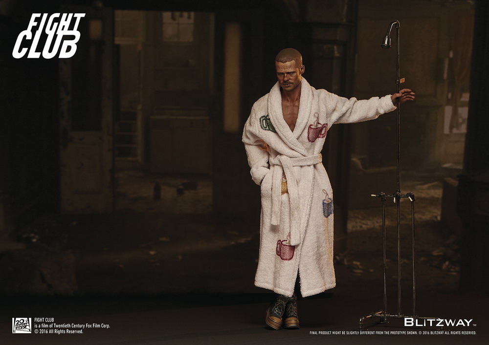 Special limited edition set includes both the Red Jacket Version and Fur Coat Version plus a special Tyler Durden bathroom robe exclusive. Sculpted by K.A. Kim.