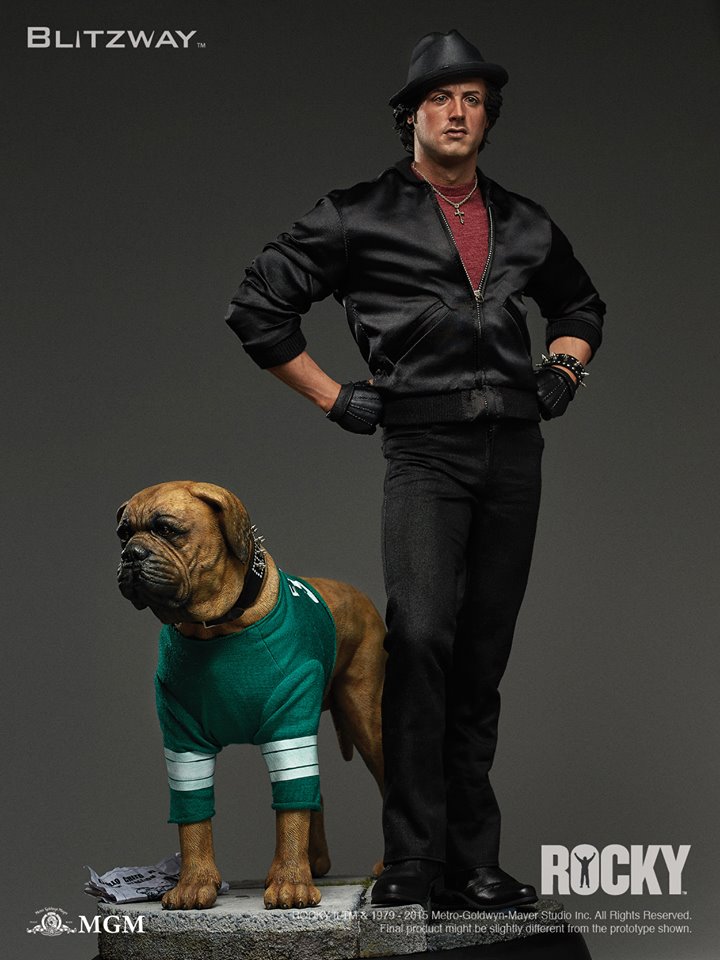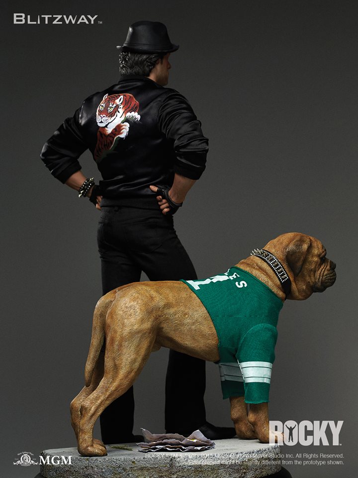 A stunningly accurate statue over 20 inches tall! Sculptor K.A.Kim created an intricately sculpted face that imbues Rocky's internal conflicts and captures the image of raw strength and tenacity in the body and pose. Butkus, Stallone's pet dog in real life and the 'Rocky' series, takes his place next to Rocky as the ever-faithful partner and family member watching over the boxer.