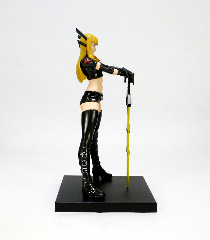 Koto’s X-Men statues come in packaging similar to their Marvel Now Avengers lineup, which means dynamic boxes covered in gorgeous artwork. Magik’s is overwhelmingly orange, with a convoluted background of two-tone comic book images. The front panel has a straight on photograph of the statue surrounded by the series name and all of the requisite logos and iconography. While one side panel displays the Uncanny X-Men logo the other has Granov’s illustration of the character so you can see just how closely the statue matches the artwork. As usual the back panel of the box has more photos of Magik from various angles plus a bio of the character and description of the statue.