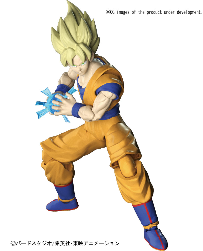 A new breed of action figure model kit that blends high articulation and detailed sculpts together in one package! Super Saiyan Goku is constructed using layered colored plastic techniques that blend the seam lines together with the folds of his outfit and contours of his muscles leading to a natural appearing joint system. Simple construction patterns ensure it will be an easy to build figure even for those who have never built a model kit before! Includes different hand parts for various martial arts poses, and 2 types of kamehameha effect parts with stand, and one powering up facial expression!