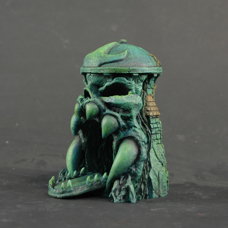 Icon Heroes has released their latest licensed Masters of the Universe desk top accessory: the Castle Grayskull Business Card Holder. Painted by The Four Horsemen, no detail was overlooked from the beautiful Coat of Arms crest on the Jawbridge to the menacing skull facade. Lower the Jawbridge to display business cards on the lower teeth. The Castle Grayskull Business Card Holder measures approximately 5" H x 4" W x 3.25" L and also stores the He-Man Power Sword Letter Opener (sold separately). $34.99 and in-stock now at many fine retailers, including BigBadToyStore.com
