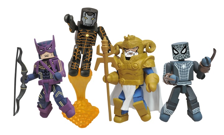 To commemorate the Earth-shattering Marvel storyline, Diamond Select Toys is releasing two box sets of Minimates! The Worthy box set includes Cul, The Serpent (the Asgardian god of fear); his herald Skadi (a.k.a Sin, the Red Skull's daughter); Mokk, Breaker of Faith (formerly the Grey Gargoyle); and Angrir, Breaker of Souls (formerly the ever-lovin' blue-eyed Thing). Each comes with a massive hammer, and the Serpent also comes with his staff.