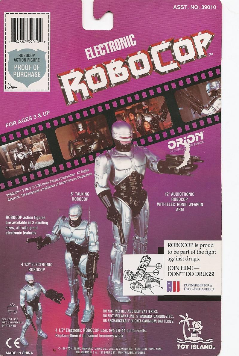[HR][/HR]While clearly designed with the younger collector in mind ("Beep Buzz Whirr"), Toy Island's line of RoboCop action figures were actually well-sculpted toys. I snagged the 4 1/2" RoboCop with Recharging Station and the 8" talking Robo, the latter still fighting the war against drugs with it's comical voice messages. Fun stuff.