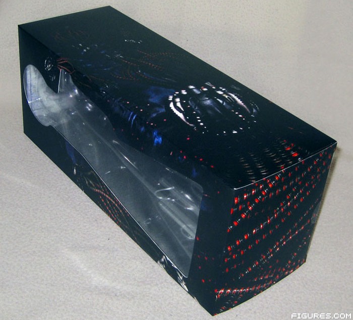 You slide out the package to reveal a window box. There is a nice collage of Sentinels printed on top. Inside the window box, the Sentinel is housed in standard form fitted plastic, held securely by twist ties.