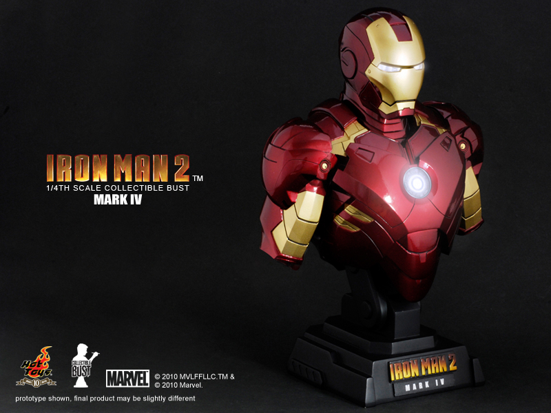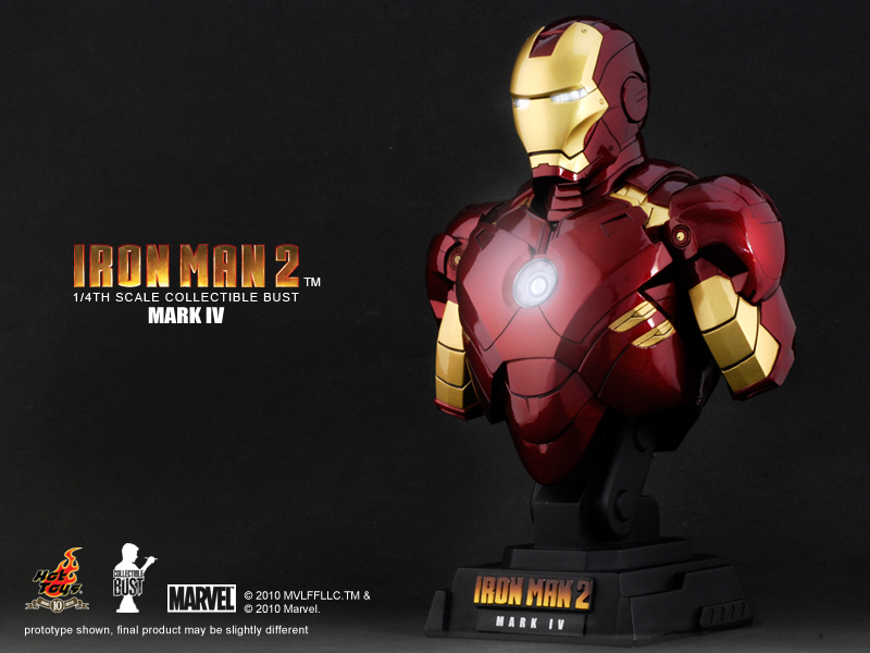 [HR][/HR]Hot Toys provides a look at their latest Iron Man 2 movie collectible: The 1:4th scale Iron Man 2 Mark IV bust.
