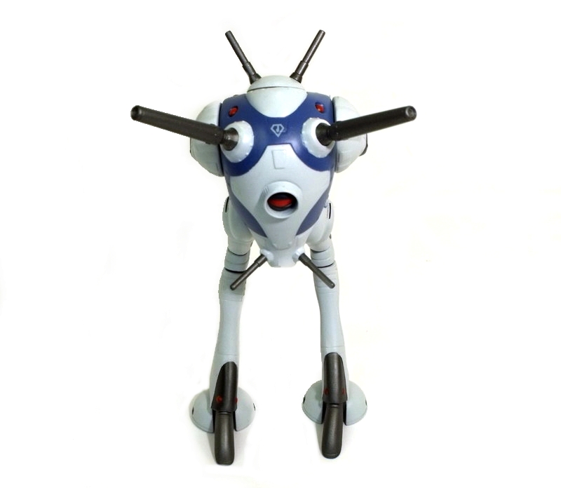 The word "vinyl" is often associated with soft designer toys and non-poseability. Toynami's vinyl Zentraedi Battlepod is neither, being of a nice solid construction and offering, not many, but a few key points of articulation. The Battlepod features legs that rotate at the hip, a cut at the waist, two back thrusters that pivot and two large head guns that swivel on a ball-joint. It's enough to get some display variety, though the lack of knee joints really hurts the figure's overall ability to strike cool poses.