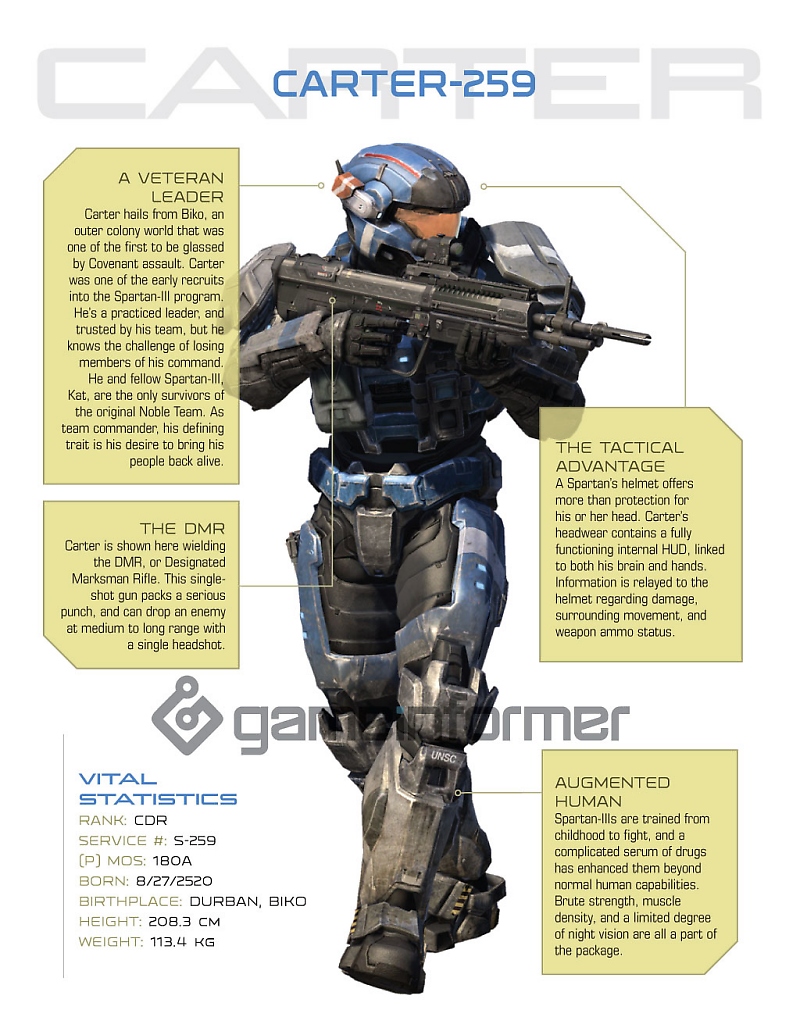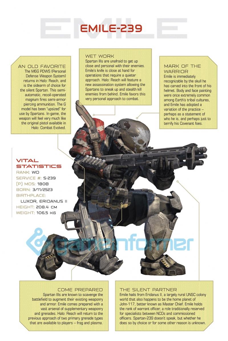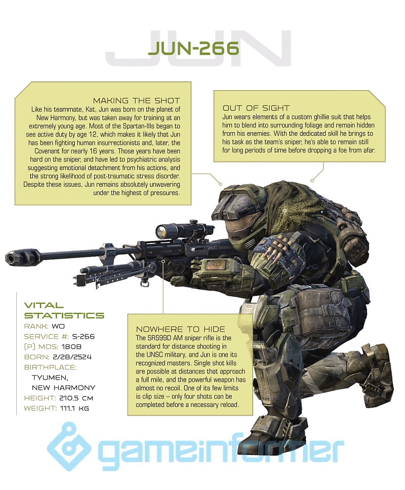 While we have yet to see game images of the new Elite and Spartans (though we can pretty much imagine what they look like), the unique appearances of Noble 6, Emile and Jorge have all been unveiled in great detail by Gameinformer magazine. Check out their photos below, along with the rest of Noble Team (Jun, Carter and Kat) who will get action figures later on in the series.