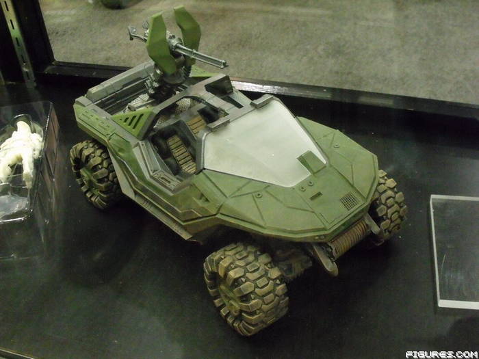 In Halo: Reach vehicle news, BigBadToyStore.com reveals that the Warthog can carry up to three five-inch Halo figures into battle. This first version will feature the classic Gatling Gun weapon and will include rolling wheels, turning steering wheel, spinning gun turret, and elevating Gatling Gun. It is priced at $29.99.