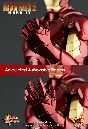 [HR][/HR]Hot Toys has released images and full details about their newest 1/6th scaled Movie Masterpiece figure. This all new Mark IV figure is the third release so far from the Iron Man 2 collection and will accompany the previously announced War Machine and Whiplash figures. The figure will feature added versatility and poseable fingers to provide the ultimate Iron Man collectible so far.