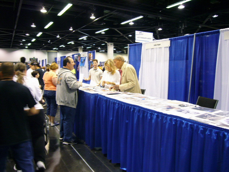 Past the cars and other fun stuff the hall split off into distinct sections: the celebrities and the rest. Anaheim Comic Con, being so close to Los Angeles, featured a fairly huge array of guests. Each "celebrity" manned his or her own table, selling wares and signing autographs. Unfortunately for the casual fan, most of the guests required payment even for friendly photographs, and a few were even standoffish. Just some of those in attendance were Gil Gerard, Erin Gray, Shannen Doherty, Jewel Staite, Kevin Sorbo, Lindsay Wagner, Verne Troyer, and many, many more. Also on hand was a large contingent of Suicide Girls!