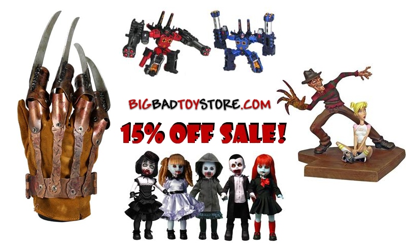 From now until this Friday, save 15% on everything BigBadToyStore.com carries except 'New' and 'Preorder/ Backorder' items! Thousands of items are on sale and Big Bad has just removed the 'New' designation from hundreds more. Graphic Novels, Vintage Department, Toys, Statues, Busts and many other items are included. Just browse through your favorite menus to view the sale items!