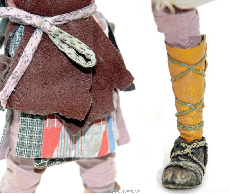 COSTUME/CLOTHING: One of the most impressive aspects of this figure is the costume, which is accurate to the film. Everything from the knotted rope sandals (which in this case are molded) to the multi-pattern shirt and skirt to the leather vest, wristlets, and shin guards.