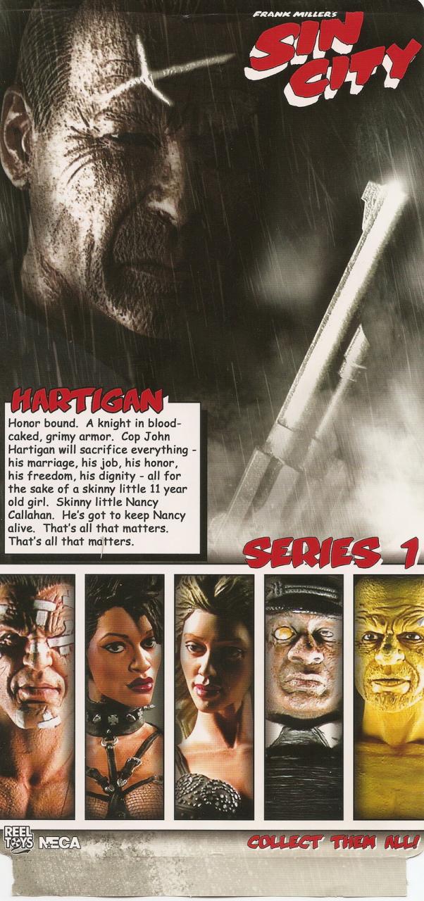 [HR][/HR]With Mickey Rourke back in the spotlight again as Whiplash, I found it appropriate to showcase an earlier role of his: Marv in the awesome adaptation of Frank Miller's Sin City. In addition to a cool Rourke action figure, NECA also gave us Bruce Willis as Hartigan. Nancy and Yellow Bastard, whose card backs I've misplaced, were featured in this first assortment as well - both colored and black and white editions. Great figures from an equally great movie.