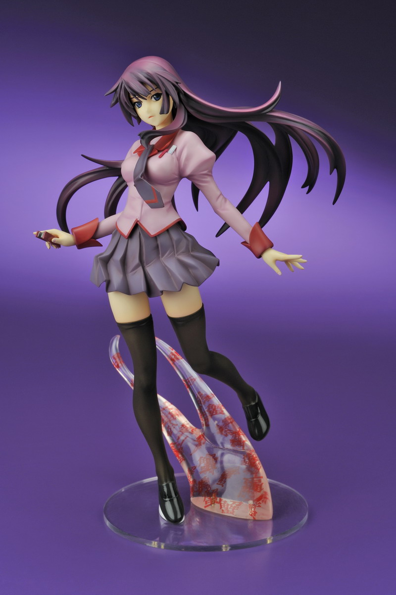 From the hit anime series Bakemonogatari comes the main heroine HITAGI SENJOGAHARA. Posed atop a translucent "omoshigani" monster-inspired base, the mysterious weightless girl floats in the air with a stunning grace. You can display Hitagi with or without her trademark stapler in her hand. Sculpted by Shiketaudonko, Senjogahara stands 8 ½ inches tall (1/8th scale) and is constructed of high-quality pvc plastic.