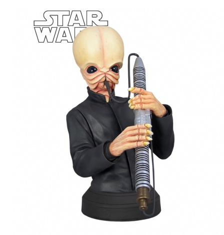 Know as "Fiery" Figrin D'an to his friends and fans; Figrin was the leader of the intergalactic band of alien Bith's known as "The Modal Nodes" (commonly known as the Cantina Band). This 1/6th scale mini-bust is cast in high quality polystone, complete with Figrin's Kloo Horn instrument. $59.99.