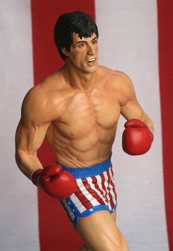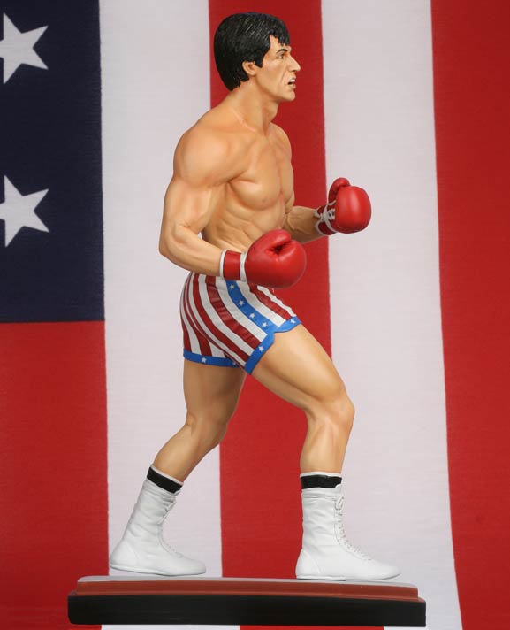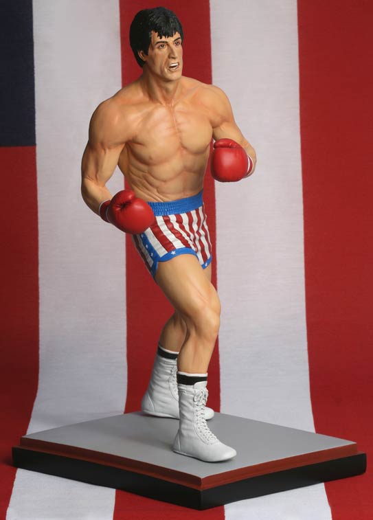 [HR][/HR]Rocky needs no introduction. A movie and cultural icon, the "Italian Stallion" created by Sylvester Stallone has become a part of popular culture. This polystone 12-inch statue from Hollywood Collectibles Group portrays Rocky in a classic fight pose, as he is about to throw another huge punch at his opponent.