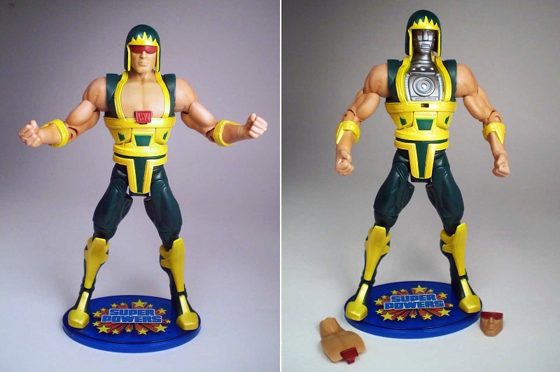 Yet another Super Powers figure joins the DCUC ranks and this time around it Superman's trusty cyborg Cyclotron. At first glance, this figure looks rather plain but he is actually more than meets the eye. Cyclotron features removable chest and face pieces which conceal his robotic features. The Horsemen have done a fantastic job in updating this classic character's look and he is also the first figure in the series to include a "Super Powers" logo base.