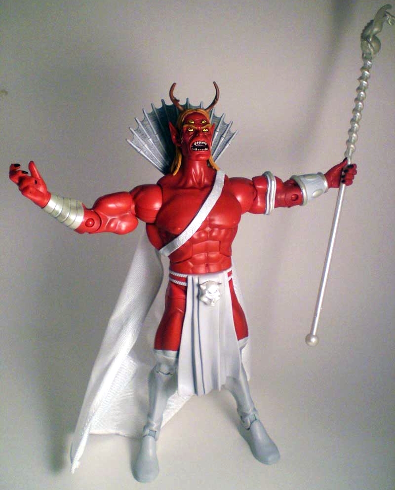 This devilish looking character is the tallest collect and connect figure in the DC Universe Classics collection so far as a result of his ornate cape collar. This four-eyed villainous demon from the Teen Titans books is very cool looking and includes a white fabric posable cape and staff. The figure seems to feature a new taller body that was like designed to be used in other future Collect-and-Connect figures.