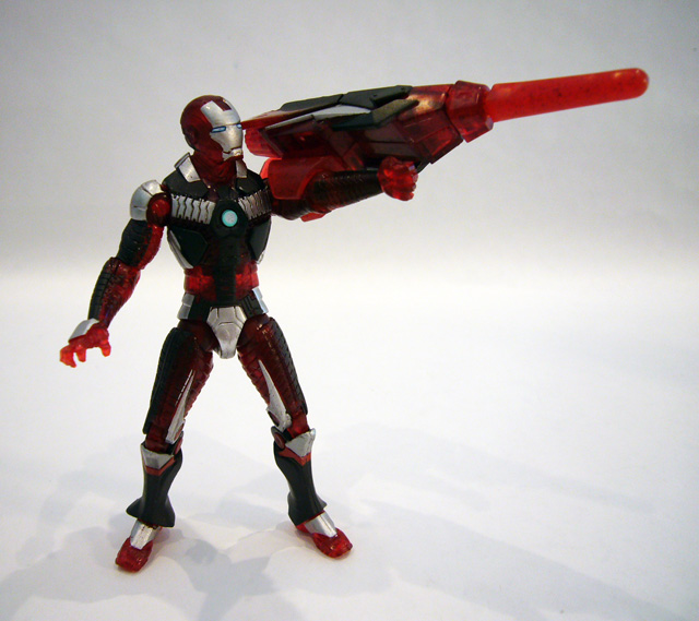 Hasbro did something strange with the accessories for Bio-Metal Iron Man. He comes packaged with the gripping left hand, left over from the original figure to hold his suitcase. However, Bio-Metal doesn't have a suitcase. He does come with the alternate left hand so you can swap out the grip for an open hand/repulsor blast. Bio-Metal also comes with the huge projectile-firing launcher originally packaged with the Concept Series Hypervelocity Armor. Mainly for the kids it's easily forgettable, but at least it was re-done in translucent plastic and colors matching the Bio-Metal armor.