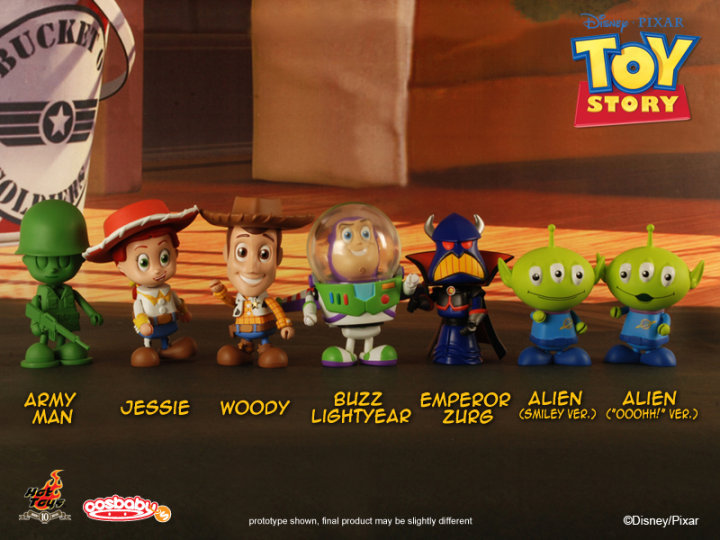 [HR][/HR]Hot Toys has revealed photography of their recently announced Toy Story 3 Cosbabies. This assortment of 3 inch tall super-deformed and super cute characters includes Buzz Lightyear, Woody, Jessie, Army Man, Emperor Zurg and Space Aliens (2 versions). They are slated for a 3rd quarter release.