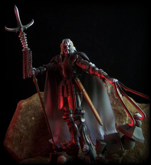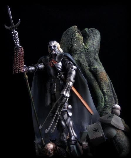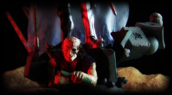 However, Majinsai features the most accessories, including his massive claw, his sword and sheath, his tri-blade spear (with real chains hanging from the staff!), and a base featuring the evil warlord's lieutenant, Gaikotsu Maru, crawling out from a grave.