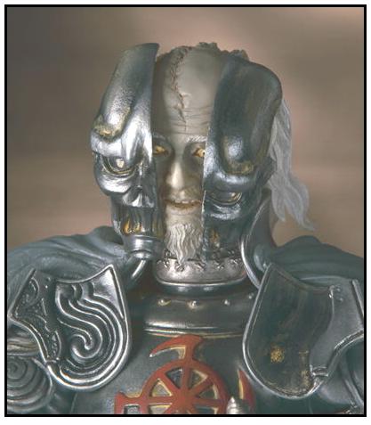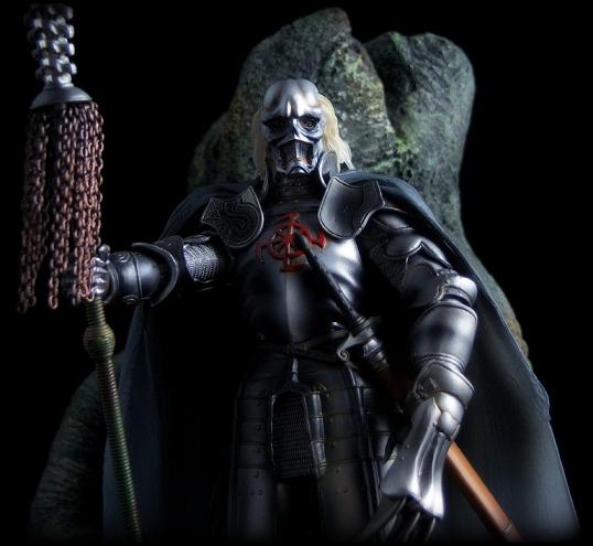 Majinsai - Henshin Ninja Arashi's archenemy - comes to life in his detailed armor and mask. Takeya again exaggerates the character's original look from the TV show, giving the evil old man - with his massive claw and flowing cape - an ornate suit of armor with overlapping pieces.