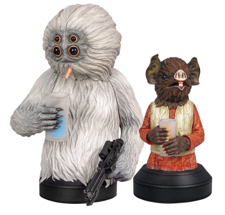 These new poly-stone mini-busts from Gentle Giant ship together with matching edition numbers and a certificate of authenticity. Muftak and Kabe measure 7" and 5" respectively. The 2-pack is priced at $129.99 and slated to ship February 2011.