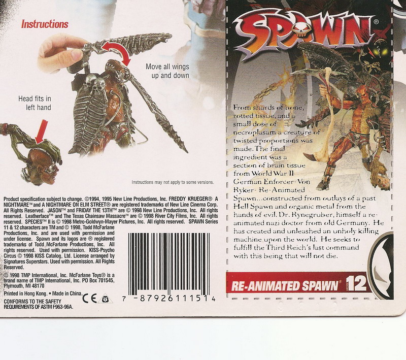 [HR][/HR]This was a phenominal Spawn assortment. Series 12 contained some true classics; action figures that remain my favorites all these years later, including Spawn IV and the Creech. Just great sculpts that don't require any updating. Series 12 wasn't without its flaws, however, like the goofy Re-Animated Spawn, Top Gun and Bottom Line, but as a die-hard McFarlane collector, I just had to get them all.
