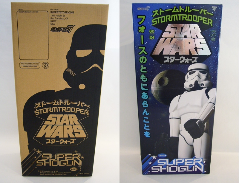 Super7's Stormtrooper isn't cheap, and thankfully they didn't cut corners when it came to packaging and shipping. The first thing you'll see is a huge cardboard shipping carton decorated with a Stormtrooper silhouette and logos for the Super Shogun line and the Stormtrooper itself. The troopers ship one per carton, so if you want you'll be able to keep the inner box in pristine condition.